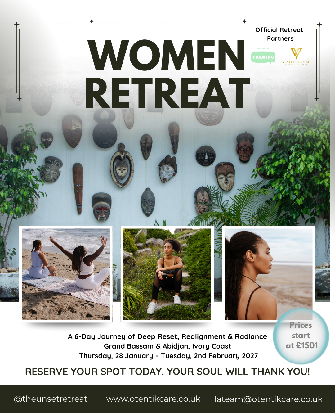 Join the Unset The Mindset Retreat Drop-In on Google Meet to ask your questions, explore what is included in the retreat, and get a clear sense of the experience waiting for you in Ivory Coast. This online session is a warm, open space to understand the vision, the purpose behind the retreat, and how it can support your transformation. If you’re curious, interested, or feeling called, this is the perfect moment to step in and discover more.
